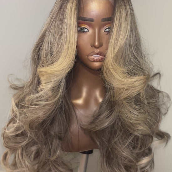 She’s soft. She’s sultry. She’s that girl effortlessly blending buttery honey highlights, cool ash blonde ribbons, and rich brunette roots for a tone-on-tone masterpiece that looks like luxury in motion.